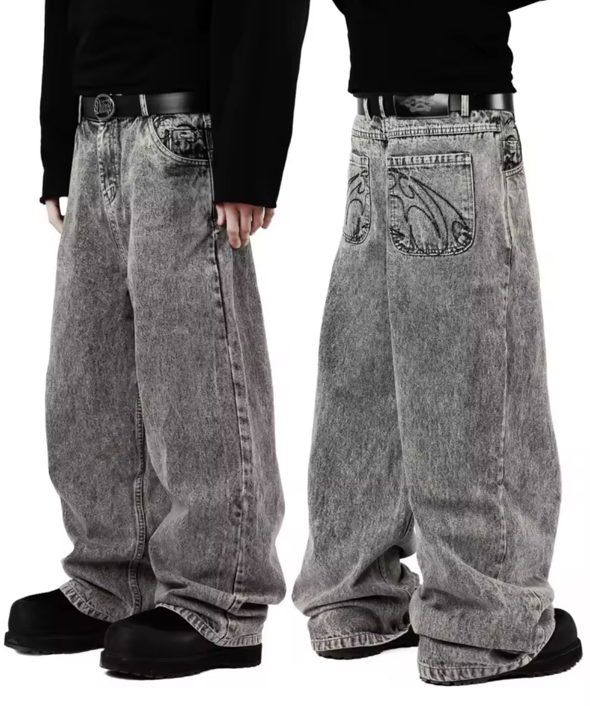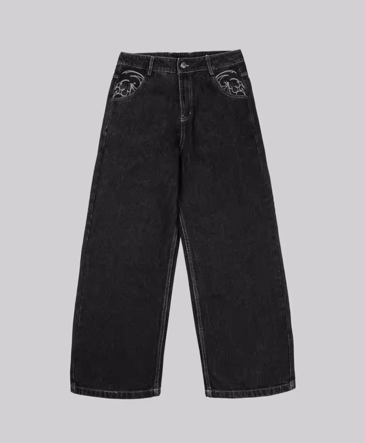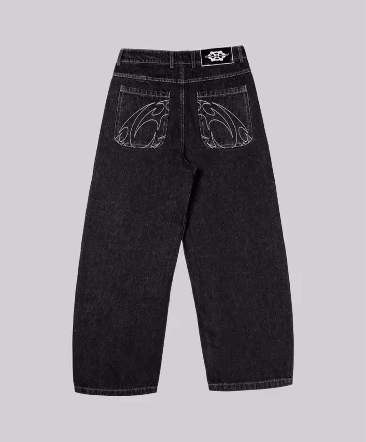 Expertly crafted BatClub Jeans feature American retro styling with solid black coloration and distinctive embroidery details. These unisex straight-leg pants offer a loose, comfortable fit with gothic Y2K aesthetic appeal. The standard sizing and quality thread weaving technique ensure durability while maintaining the authentic vintage character that defines this versatile wardrobe essential.