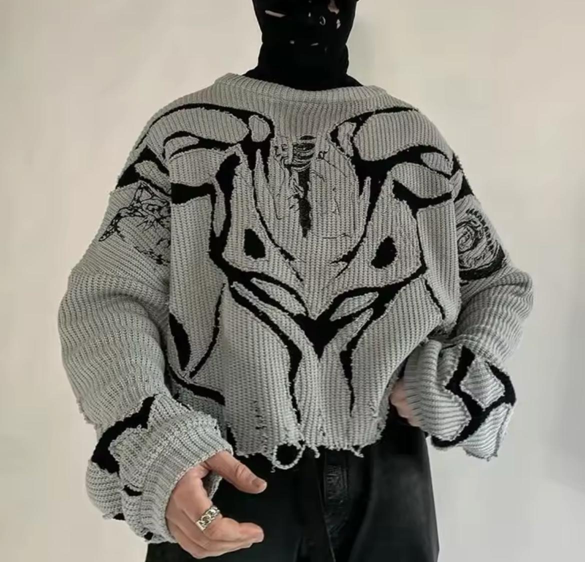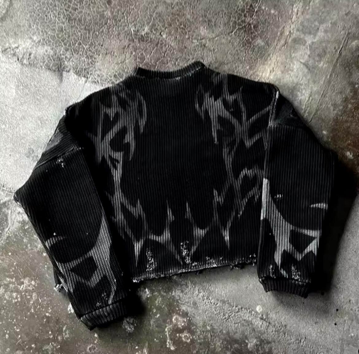 Wrap yourself in the shadows with this black knit, where comfort meets dark elegance. Featuring intricate textures and a moody, gothic aesthetic, this piece is perfect for layering or making a bold statement on its own. Soft yet structured, it captures the essence of midnight—timeless, mysterious, and effortlessly edgy. Whether you’re embracing the chill of the evening or elevating your look with a touch of the dark side, this knit is your ultimate go-to.