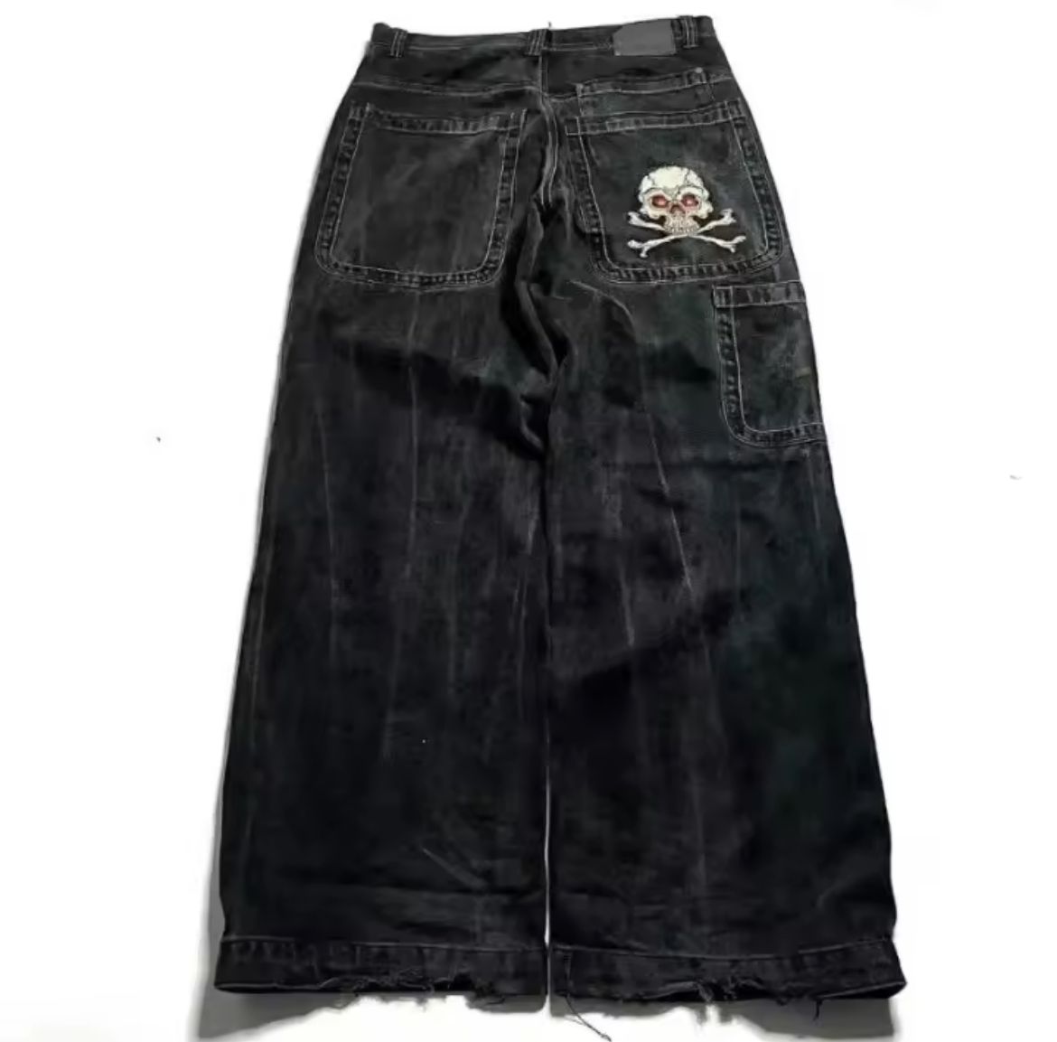 Introducing our Black Grunge Denim Skull Jeans — where rebellion meets raw style. Crafted from heavy-wash black denim with a distressed finish, these jeans are built for those who don’t follow the rules. Featuring bold skull graphics and rugged grunge details, every rip and fade tells a story. Designed to stand out and hold strong, these jeans bring attitude to your outfit with an unapologetically edgy vibe. Pair them with boots or sneakers either way, they speak for themselves.