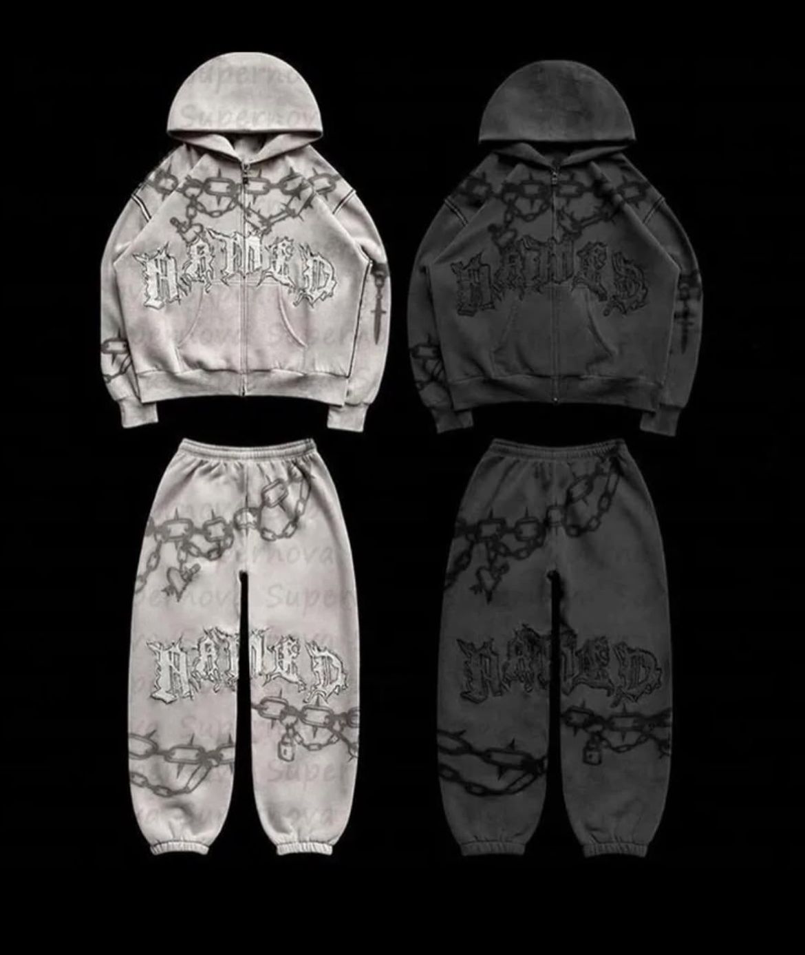Step up your style with the all-new NCS Set, now featuring a bold chains (سنسلة جنازير) design. This sweatpants-and-hoodie combo is available in two sleek colors, combining edgy aesthetics with premium comfort. As one of our best-selling sets, this limited edition is a wardrobe essential for those who love to stand out.
