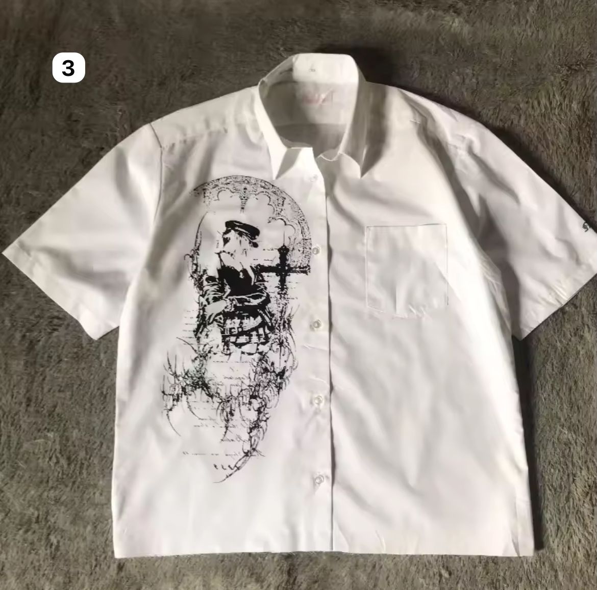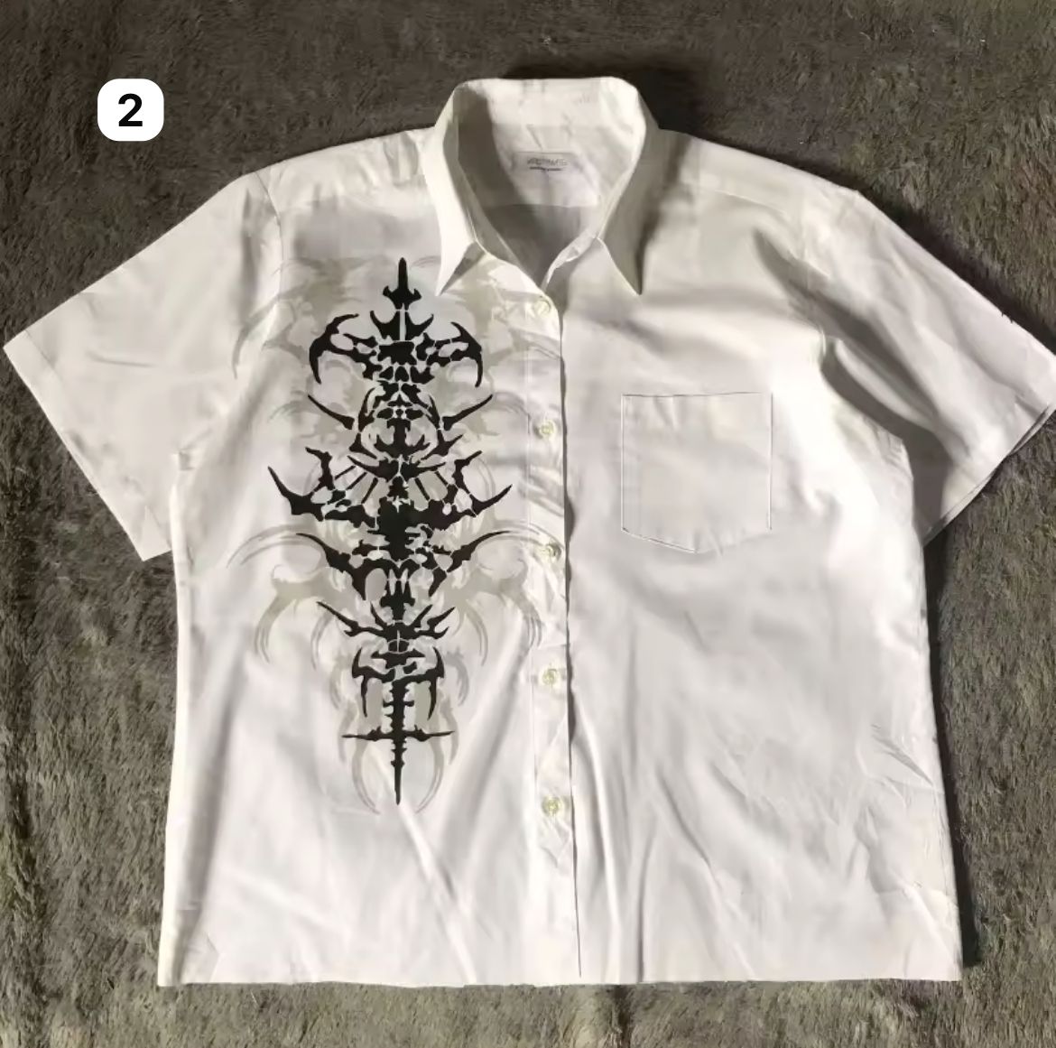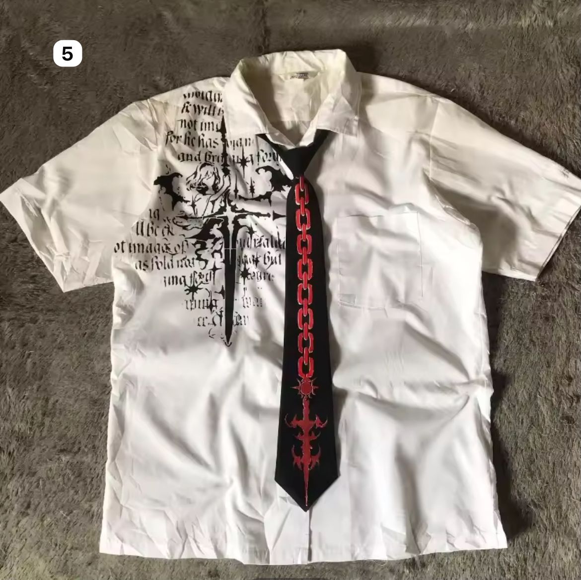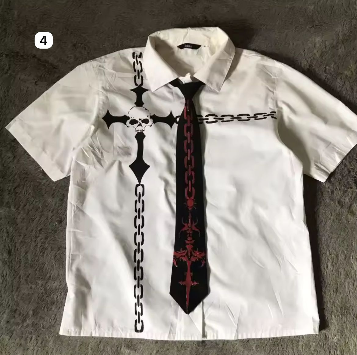 Step into the season with our Limited Edition Gothic Shirt Series — where rebellion meets ritual. Each short-sleeve white shirt is a canvas of chaos: raw graphics, gothic scripture, tribal sigils, and vintage illustrations fused with underground energy. From blood-red symmetries to bone-black emblems and chain-printed ties, these pieces blur the line between dress shirt and statement armor.