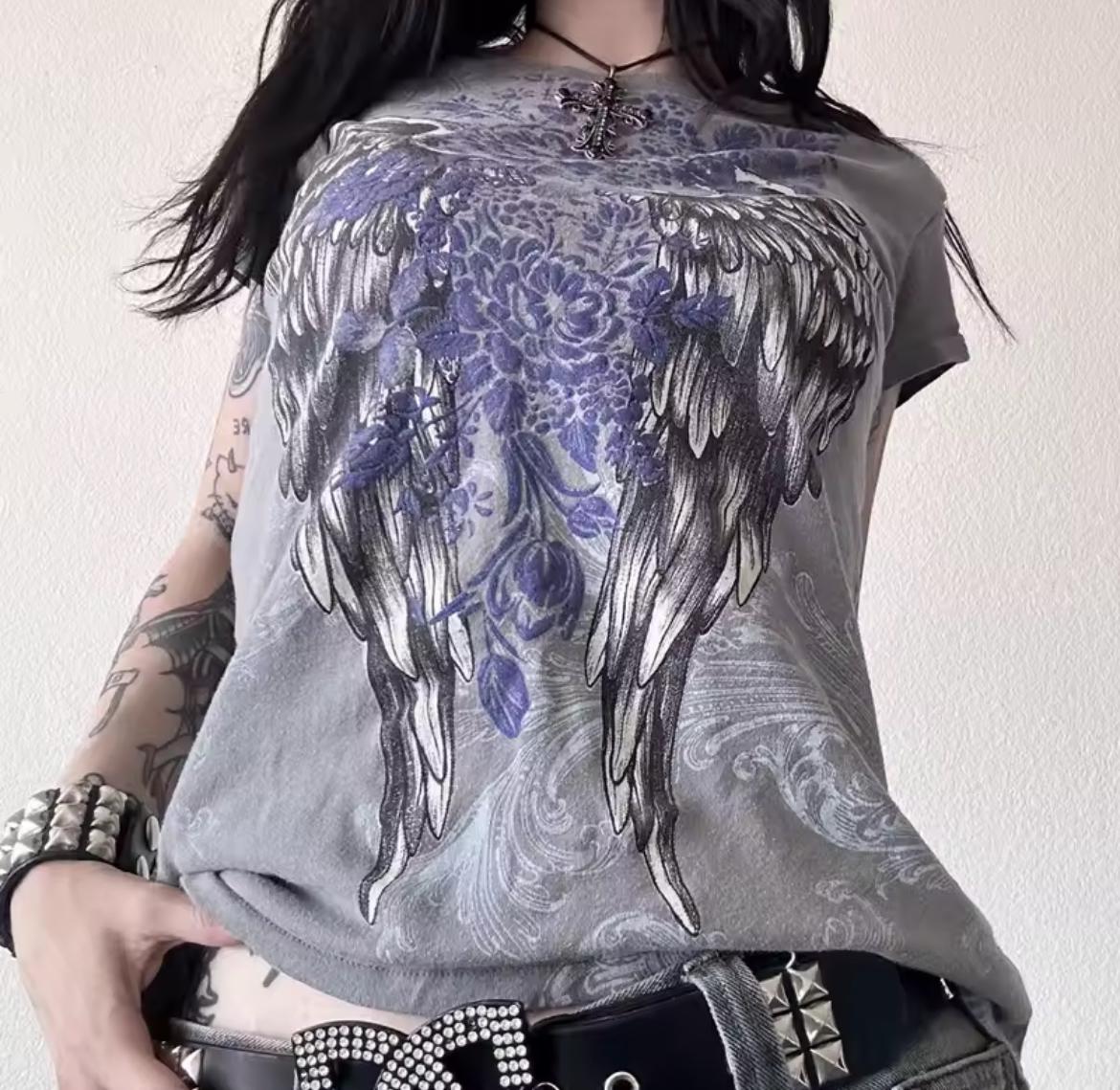 Experience the ultimate Y2k revival with our exclusive tops featuring two iconic designs: the edgy "Dark Devil Soul" and ethereal "Greynik Angel." Crafted from breathable cotton, these limited-quantity pieces perfectly capture authentic Y2k aesthetics while keeping you cool during summer. Their distinctive graphics and nostalgic silhouettes make them essential additions to any fashion-forward wardrobe.